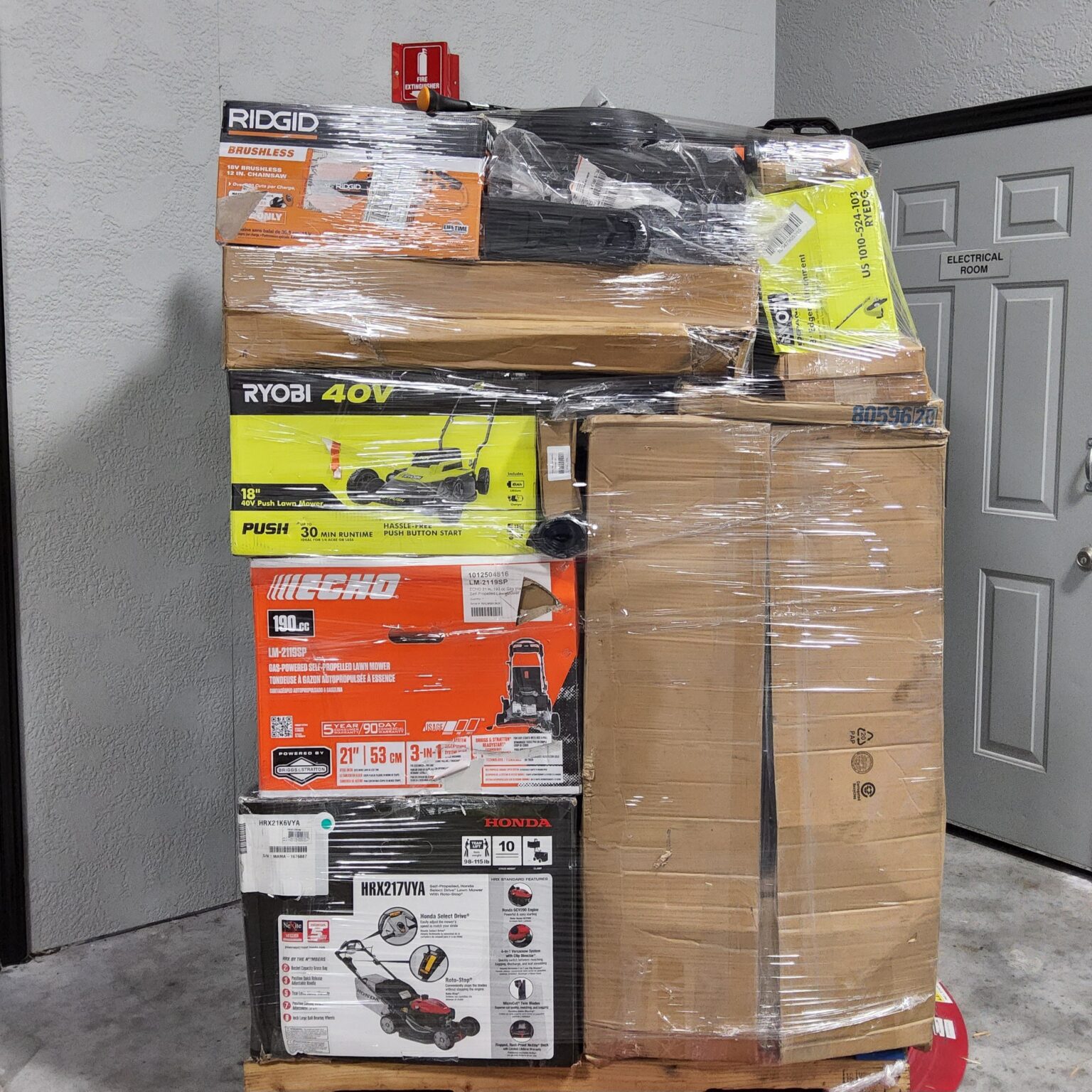 To Begin, each pallet features a varied selection of gas and electric lawn mowers from trusted brands, along with a curated assortment of outdoor maintenance tools that may include: