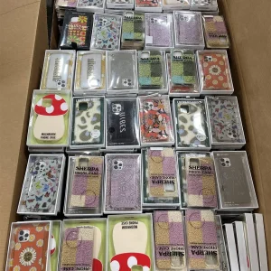 Premium pallet of 1,000 brand-new iPhone cases for $1000 featuring trending designer styles from Louis Vuitton, Casetify, OtterBox, Spigen, Coach, Kate Spade, and Tech21. Includes mixed models (iPhone 11–15), retail-ready packaging, and high resale value. Perfect for resellers, boutiques, and online stores.